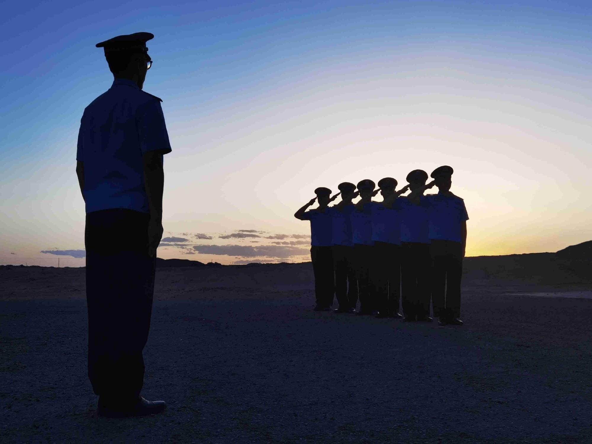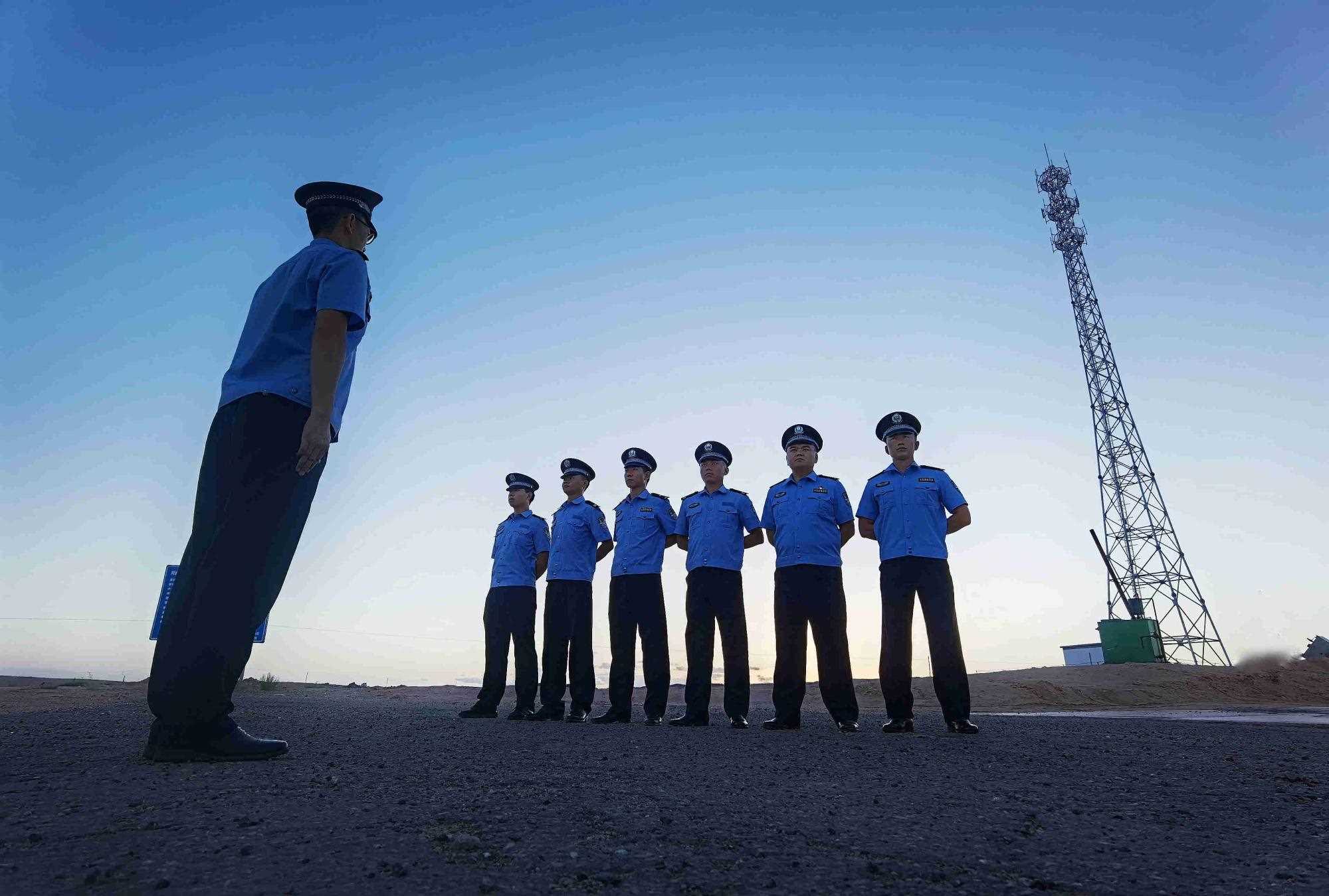 8月4日,內(nèi)蒙古出入境邊境檢查總站阿拉善邊境管理支隊(duì)塔木素布拉格邊境派出所組織開展隊(duì)列訓(xùn)練,培養(yǎng)民警令行禁止的工作作風(fēng),助力全警實(shí)戰(zhàn)大練兵。(王鵬飛攝)