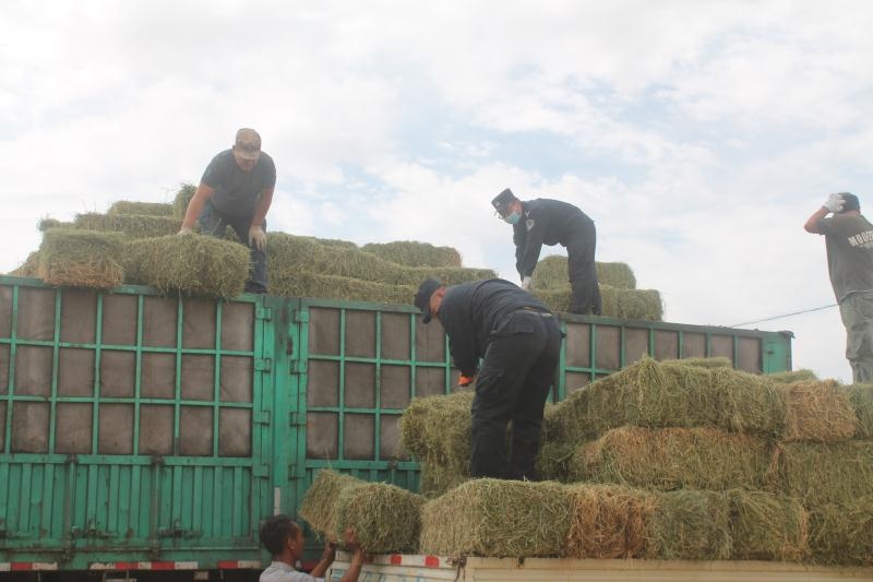 今年以來,內(nèi)蒙古自治區(qū)西部的阿拉善盟持續(xù)高溫少雨,阿拉善左旗蘇宏圖地區(qū)草場退化嚴(yán)重,駝、羊等牲畜草料嚴(yán)重匱乏,影響了牧民正常生產(chǎn)生活。8月9日,從甘肅省購置的草料順利抵達(dá)蘇宏圖,但是由于缺少精壯勞動(dòng)力,牧民們望著一車車救命的草料卻犯起了難。正當(dāng)大家一籌莫展之際,派出所聞?dòng)嵔M織6名民警組成黨員先鋒隊(duì)投入勞動(dòng),經(jīng)過3天的努力,成功將70噸1200捆草料分裝到牧民車上,受到群眾的一致好評(píng)。(牛鑫 肖鵬 梁鎮(zhèn))