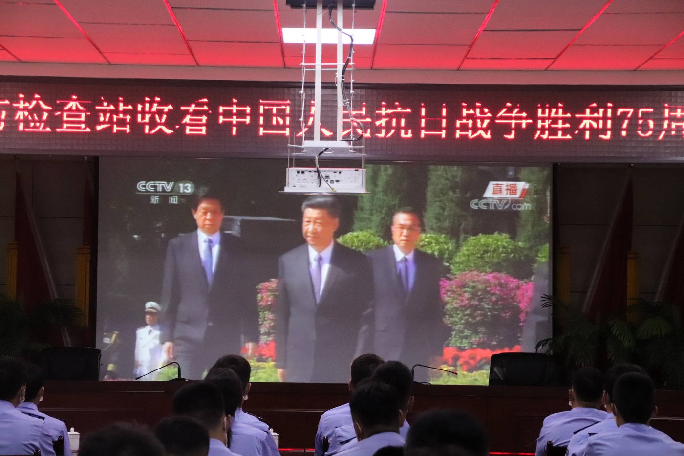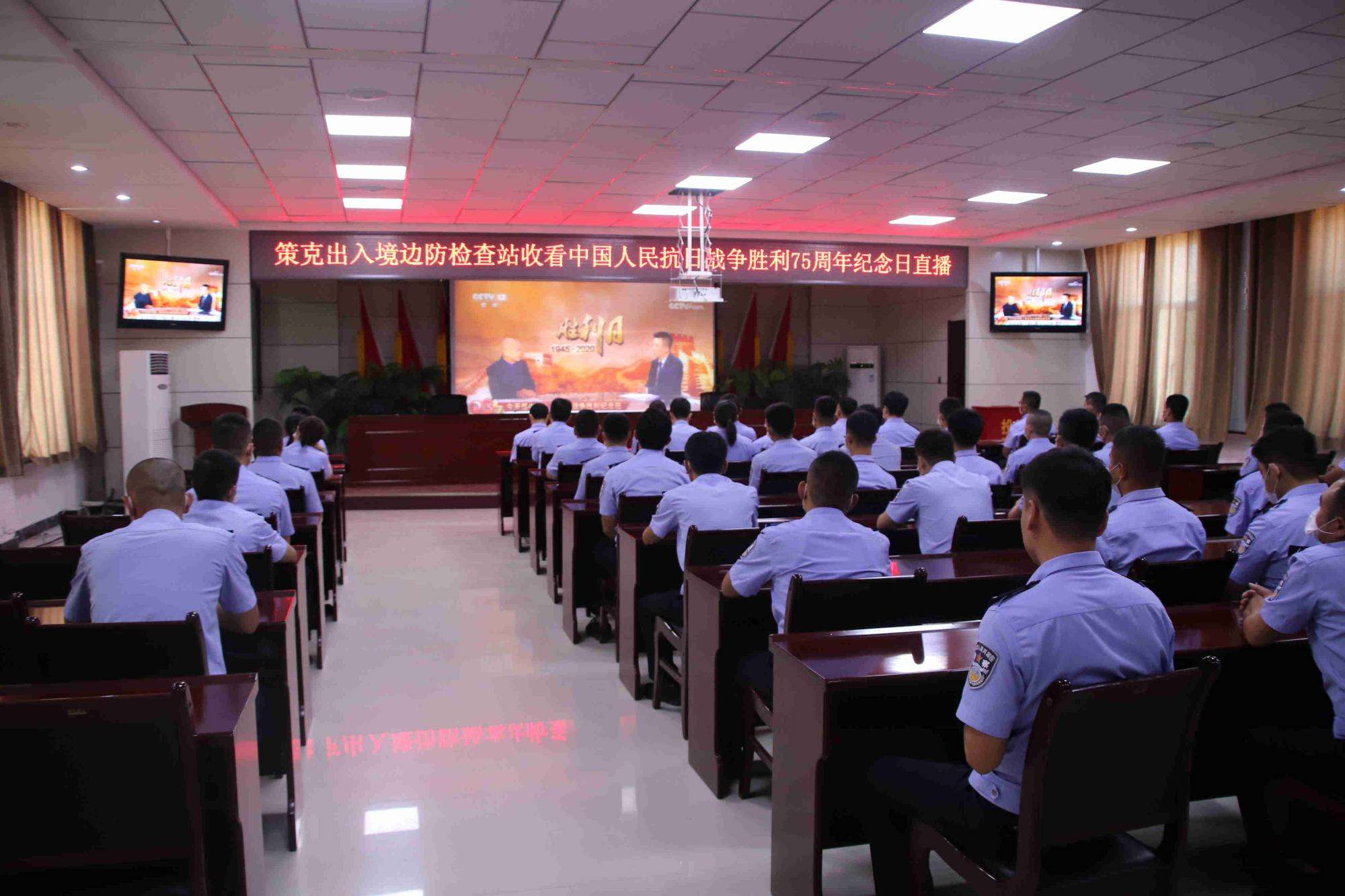 策克出入境邊防檢查站組織民警收看中國人民抗日戰(zhàn)爭(zhēng)勝利75周年紀(jì)念日直播