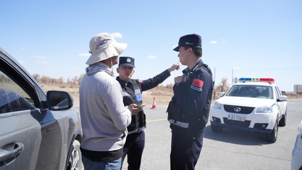 阿拉善邊境管理支隊(duì)民警在發(fā)射場(chǎng)外圍疏散來(lái)往車(chē)輛。