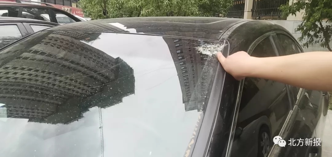 當日15時30分,記者在正祥國際小區(qū)三期工地西側見到了在附近開茶樓的賀先生。他說,他的雷克薩斯汽車是5月份才買的。記者看到,這輛車的前風擋玻璃上有一處直徑10厘米左右的放射性裂痕,車頂上有一處明顯被砸的凹陷,車身上落滿了細碎的水泥點。賀先生說,正祥國際小區(qū)三期工地高空墜物,停在路邊的十幾輛車不同程度受損,他的車最嚴重。