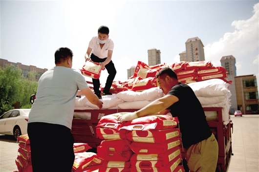 聽(tīng)說(shuō)這批物資是捐贈(zèng)給學(xué)校的,拉載物資的工人以及尚宇的朋友、家人紛紛前來(lái)幫助搬運(yùn),“我們帶著120袋優(yōu)質(zhì)大米、200袋面、100箱有機(jī)蔬菜,慰問(wèn)高新一中辛勤的老師,這是尚宇以個(gè)人的名義捐贈(zèng)的。老師們無(wú)微不至地為學(xué)生付出,在這個(gè)特殊時(shí)期,希望通過(guò)慰問(wèn)來(lái)表達(dá)對(duì)老師們的敬意?!北簧杏畹男袨楦袆?dòng),前來(lái)幫助搬運(yùn)物資的李聰亮介紹。