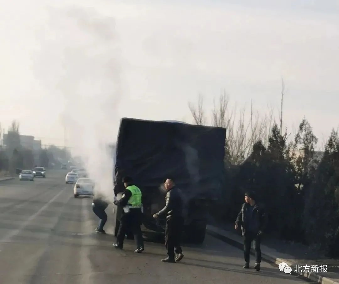 當(dāng)日,包頭市公安局交管支隊(duì)東興大隊(duì)第三警務(wù)區(qū)民警裴少華、孫建波、趙永來三人巡控至包白公路黃草洼村口北200米處時(shí),發(fā)現(xiàn)迎面駛來的重型半掛牽引車左后側(cè)有濃煙飄出,隨即將其攔停,此時(shí)車底已岀現(xiàn)明火,三人迅速拿起滅火器,并前往附近商戶打水全力滅火,20分鐘后火被撲滅。經(jīng)過初步了解,火源為剎車抱死導(dǎo)致。