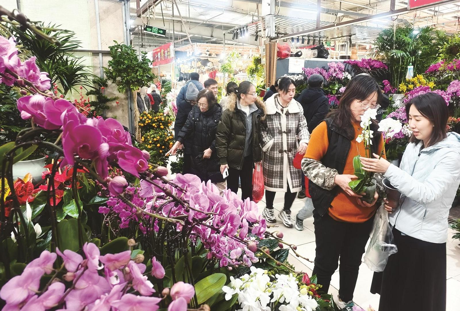 元旦假期,內(nèi)蒙古包頭市鮮花市場人氣爆棚,各色鮮花爭奇斗艷,市民們忙著選購鮮花裝點新年,處處洋溢著喜慶的節(jié)日氛圍。(宮偉恩)