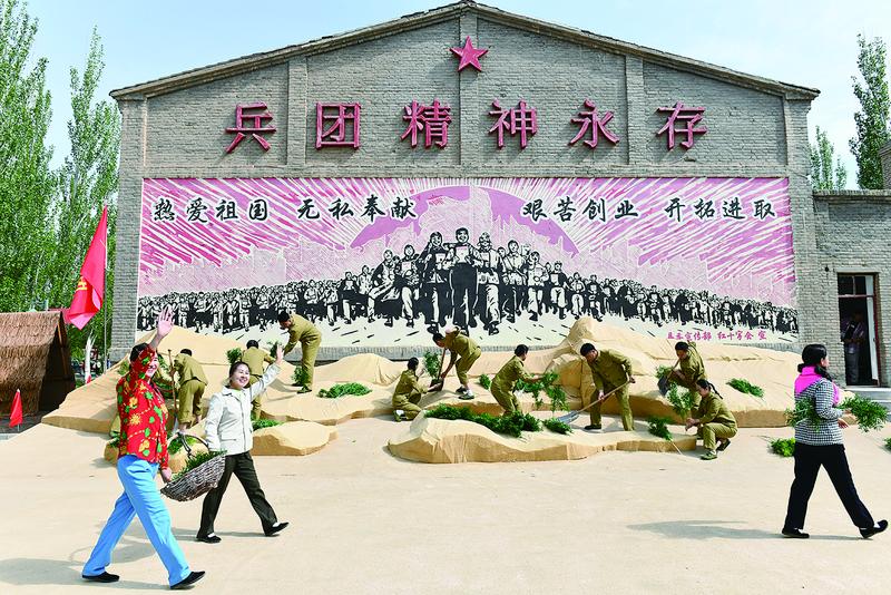 活動在歡迎兵團(tuán)戰(zhàn)士的沉浸式演藝場景中開始。“大有作為”農(nóng)事體驗、“苦中作樂”兵團(tuán)大鍋飯體驗等,讓活動參與者們“穿越”到兵團(tuán)歲月。歌手科爾沁夫演唱了本屆藝術(shù)季主題曲《來到了磴口你就不想走》,將現(xiàn)場氣氛推向高潮。