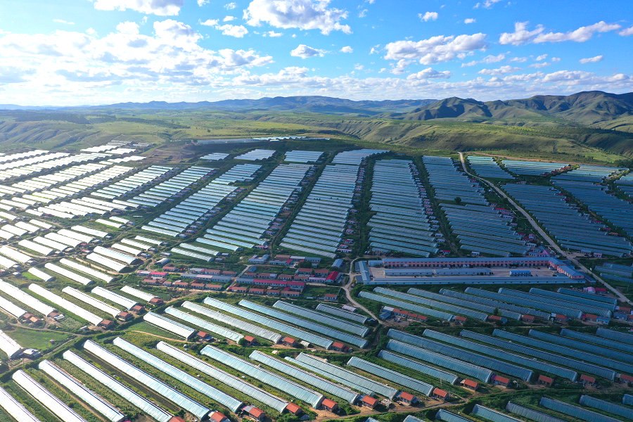 內(nèi)蒙古赤峰市松山區(qū)大廟鎮(zhèn)公主嶺現(xiàn)代農(nóng)業(yè)產(chǎn)業(yè)園,這座內(nèi)蒙古自治區(qū)單片規(guī)模最大、效益最好的設(shè)施農(nóng)業(yè)園區(qū),4822棟日光溫室生機(jī)盎然。據(jù)介紹,園區(qū)年產(chǎn)蔬菜7萬噸以上,年產(chǎn)值4億元,年純收益3億元左右。借助國家生態(tài)脆弱地區(qū)移民扶貧搬遷政策,園區(qū)累計遷入貧困戶669戶1416人實現(xiàn)脫貧。