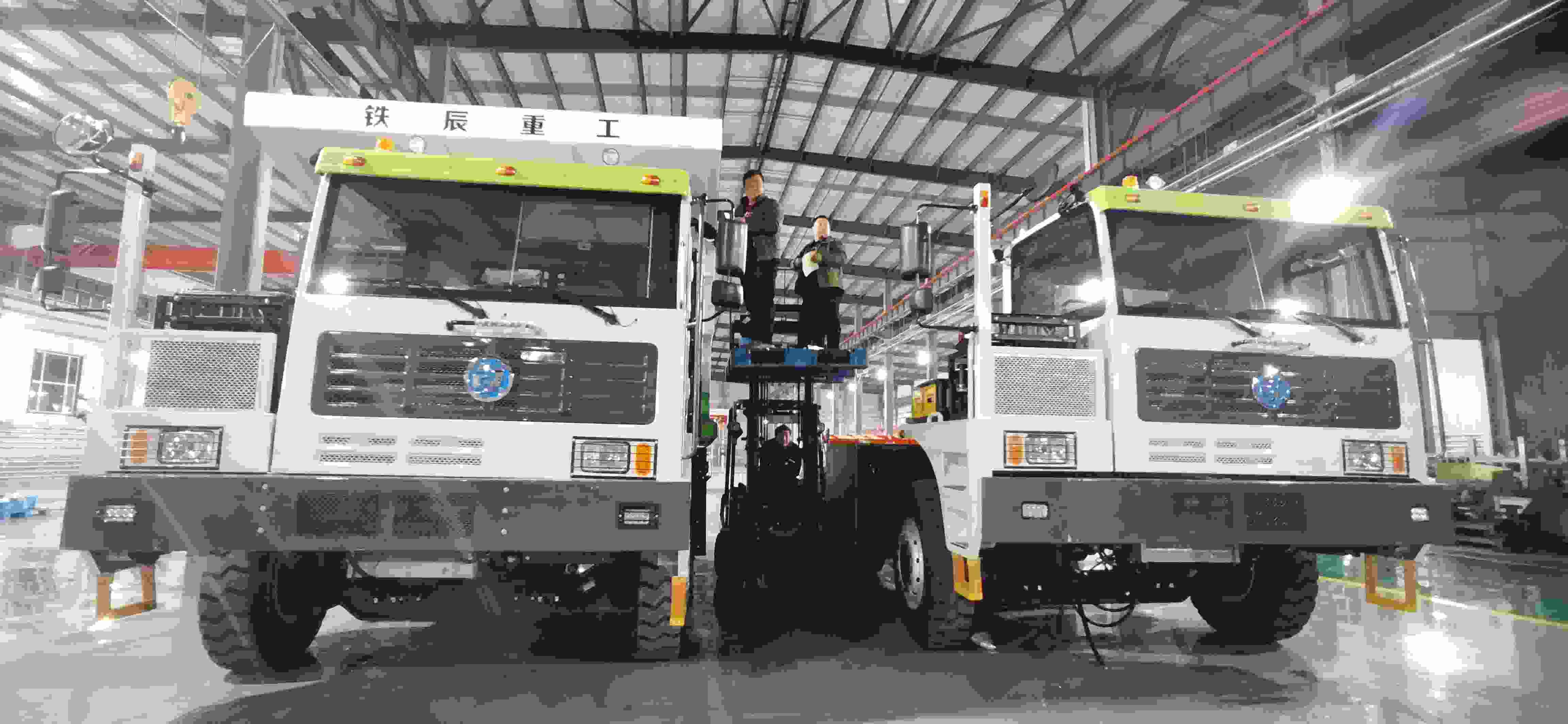 在內(nèi)蒙古鐵辰智能裝備有限公司總裝車間內(nèi),一條嶄新的智能化生產(chǎn)線已經(jīng)安裝完成并投入使用。工人們正分布在各個工位上,進(jìn)行裝配作業(yè)。另一邊,兩臺嶄新的純電動無人駕駛礦用車已經(jīng)安裝完畢,正在進(jìn)行調(diào)試。雖然項目剛剛投產(chǎn),但是已接到來自周邊地區(qū)的大量訂單。