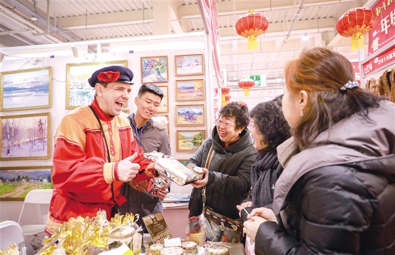 1月16日,來(lái)自俄羅斯的客商正在向首府市民介紹特色食品。當(dāng)日,第五屆呼和浩特市年貨博覽會(huì)在內(nèi)蒙古國(guó)際會(huì)展中心開(kāi)幕,來(lái)自國(guó)內(nèi)外的近千家企業(yè)帶來(lái)了琳瑯滿(mǎn)目各具特色的年貨,其中不少?lài)?guó)外產(chǎn)品受到青睞,眾多市民根據(jù)自己的喜好淘到了心儀的精品年貨。本屆年貨博覽會(huì)將持續(xù)到1月31日。