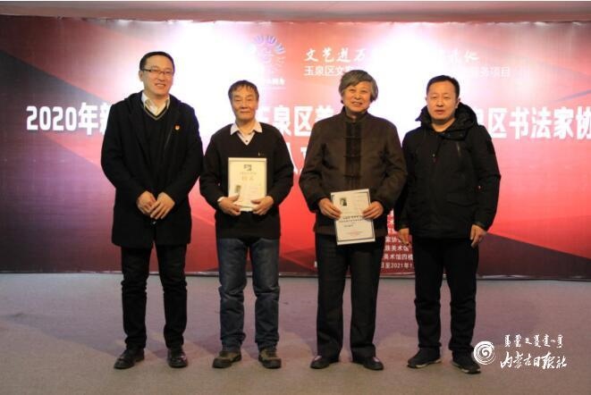 本網(wǎng)訊(內(nèi)蒙古日?qǐng)?bào)社融媒體記者 吳鈺)12月27日,由呼和浩特市文學(xué)藝術(shù)界聯(lián)合會(huì)主辦,中共玉泉區(qū)委宣傳部、玉泉區(qū)文學(xué)藝術(shù)界聯(lián)合會(huì)、玉泉區(qū)美術(shù)家協(xié)會(huì)、玉泉區(qū)書法家協(xié)會(huì)承辦,呼和浩特民族美術(shù)館協(xié)辦的“2020年玉泉區(qū)美術(shù)家協(xié)會(huì)、玉泉區(qū)書法家協(xié)會(huì)會(huì)員入會(huì)暨加入文藝志愿服務(wù)作品展”在呼和浩特民族美術(shù)館四樓舉行。