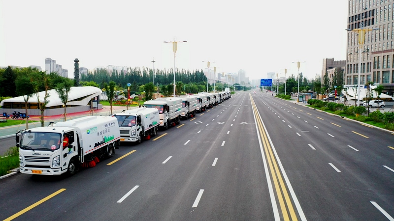 隨后,被譽(yù)為“大馬蜂”和“小蜜蜂”的18噸洗掃車和8噸洗掃車分工合作,將寬闊的成吉思汗大街機(jī)動(dòng)車道和非機(jī)動(dòng)車道清掃得干干凈凈。