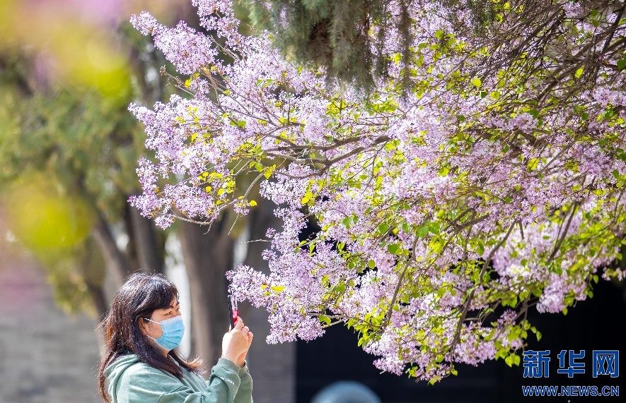 4月20日,市民在位于呼和浩特市的內(nèi)蒙古將軍衙署博物院觀賞盛開的丁香花。新華網(wǎng)發(fā)(丁根厚 攝)
