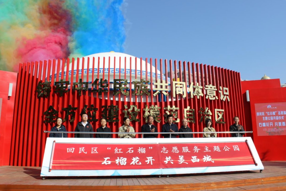 10月25日,呼和浩特市回民區(qū)舉辦“紅石榴”志愿服務(wù)主題公園開園儀式暨民族團(tuán)結(jié)進(jìn)步創(chuàng)建工作品牌發(fā)布儀式?! ?/p>