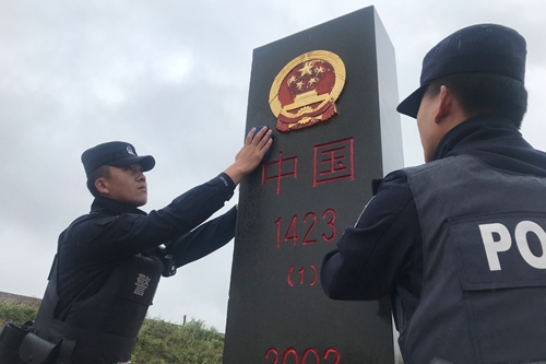 9月18日上午,內(nèi)蒙古額布德格邊境派出所民警在巡邊途中,擦拭沿途界碑,以獨(dú)有的方式向?yàn)閲柢|的英雄們致以崇高敬意。