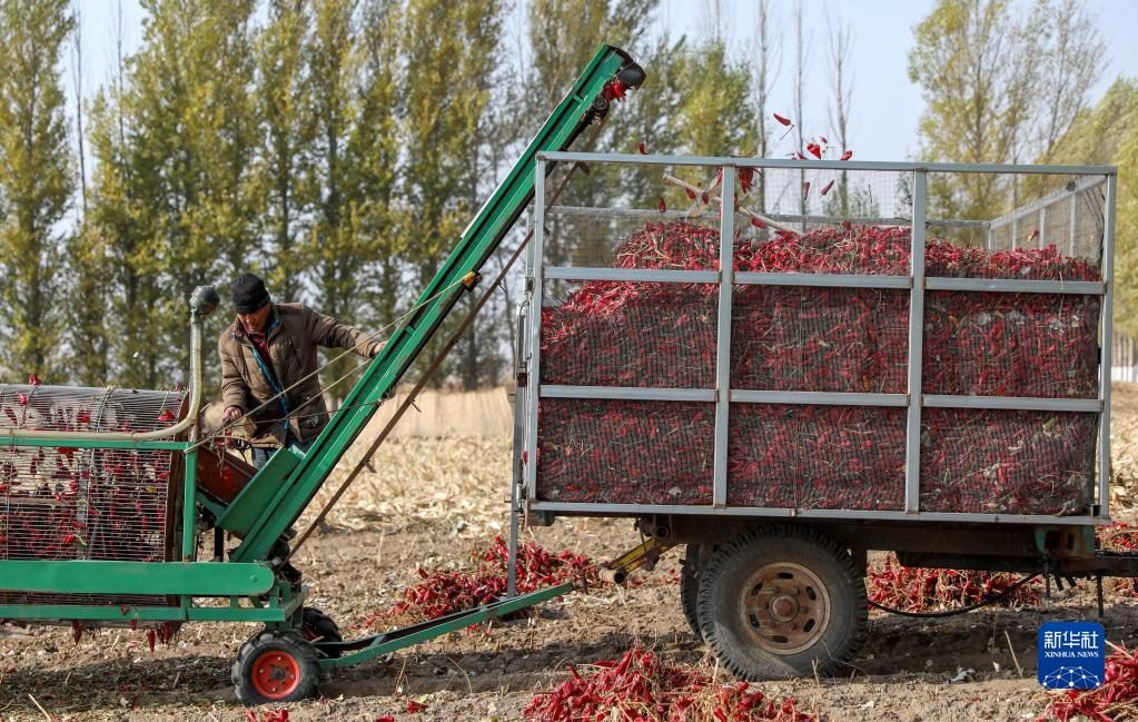 10月25日,在開(kāi)魯縣東風(fēng)鎮(zhèn)東方紅村,村民收獲紅干椒。新華社記者 連振 攝