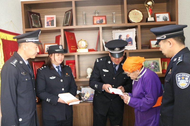 5月6日上午,民警們手捧鮮花來到都貴瑪老人家。一進(jìn)家門,便為都貴瑪老人送上了節(jié)日的祝福。民警們與都貴瑪老人嘮起了家常,詳細(xì)詢問老人的身體狀況和生活情況。大家你一言,我一語,聊著聊著,就談到了當(dāng)前開展的黨史學(xué)習(xí)教育。民警們把自己的學(xué)習(xí)體會(huì)和收獲一一向都貴瑪老人作了匯報(bào)。都貴瑪老人說,自己也通過觀看《新聞聯(lián)播》了解到國家十四五開局之年和全黨開展黨史學(xué)習(xí)教育的相關(guān)內(nèi)容。特別是看到民警們帶來的黨史書籍時(shí),都貴瑪老人和大家講述了他們那一代人如何利用蒙文版書籍學(xué)習(xí)黨章黨史的故事,再次回顧了習(xí)近平總書記為她授予“人民楷模”國家榮譽(yù)稱號(hào)獎(jiǎng)?wù)聲r(shí)的自豪和激動(dòng)。