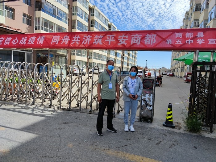 在學(xué)校站在三尺講臺(tái),拿起書本,面向孩子,他們是一名光榮的人民教師。走上抗疫一線,穿上白底藍(lán)邊的防護(hù)服,拿起測(cè)溫儀,他們是一名光榮的抗疫防疫工作者。以師者擔(dān)當(dāng),同心戰(zhàn)“疫”,眾志成城,商都必勝!