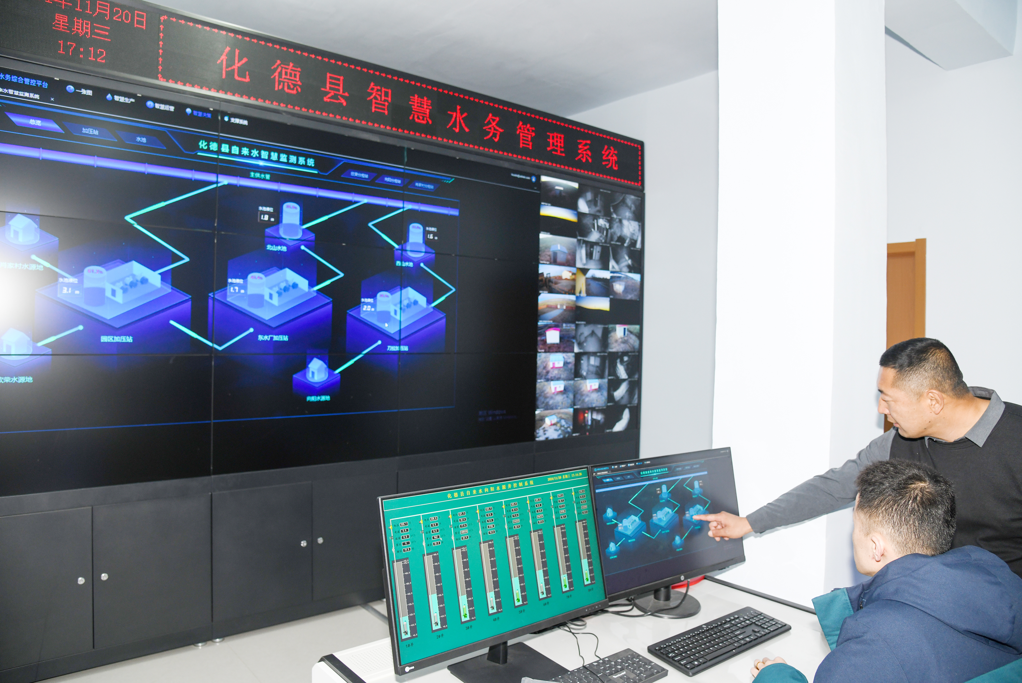 工作人員通過智能化控制系統(tǒng)對(duì)化德縣地下水開采量進(jìn)行實(shí)時(shí)監(jiān)測?!?/span>