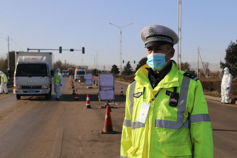 標準的停車手勢,文明的禮貌用語,敬禮,請您出示核酸證明,行程碼……在110國道烏海市烏達區(qū)三道坎疫情防控檢查點,一位兩鬢微白的民警在一眾年輕人中格外顯眼,正在核查進入烏達區(qū)方向車輛司乘人員的健康碼、行程碼及48小時內核酸檢測證明,從早上7點50分上崗便冒著寒風排查車輛,到下午4點一站就是8個小時,最多的時候,車流量達到2600多輛,勸返車輛30多輛40余人,勸他休息,他卻說:“現(xiàn)在是非常時期,打好疫情攻堅戰(zhàn),需要我們眾志成城,一起努力!”