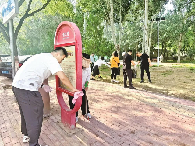 隊(duì)員們中有不少是和田永成年紀(jì)相仿的退休老人,還有一些新加入進(jìn)來(lái)的年輕志愿者。他們有的拿著掃帚清掃路面,有的提著袋子撿拾垃圾,有的則在擦拭小區(qū)的健身器材。魏玉仙是志愿服務(wù)隊(duì)的老隊(duì)員了,她一邊擦著石凳一邊說(shuō):“小區(qū)是咱們自己的家,干凈了住著才舒服。老田頭一招呼,我們肯定得來(lái)。”