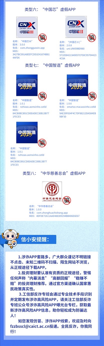 近期一些不法分子套用各類官方公開信息,打著“國(guó)家支持項(xiàng)目”“國(guó)家惠民政策”旗號(hào),制作出一大批App,在其中編造虛假投資理財(cái)項(xiàng)目,以高收益為誘餌,忽悠不明真相的群眾在App“投資”進(jìn)而實(shí)施詐騙。