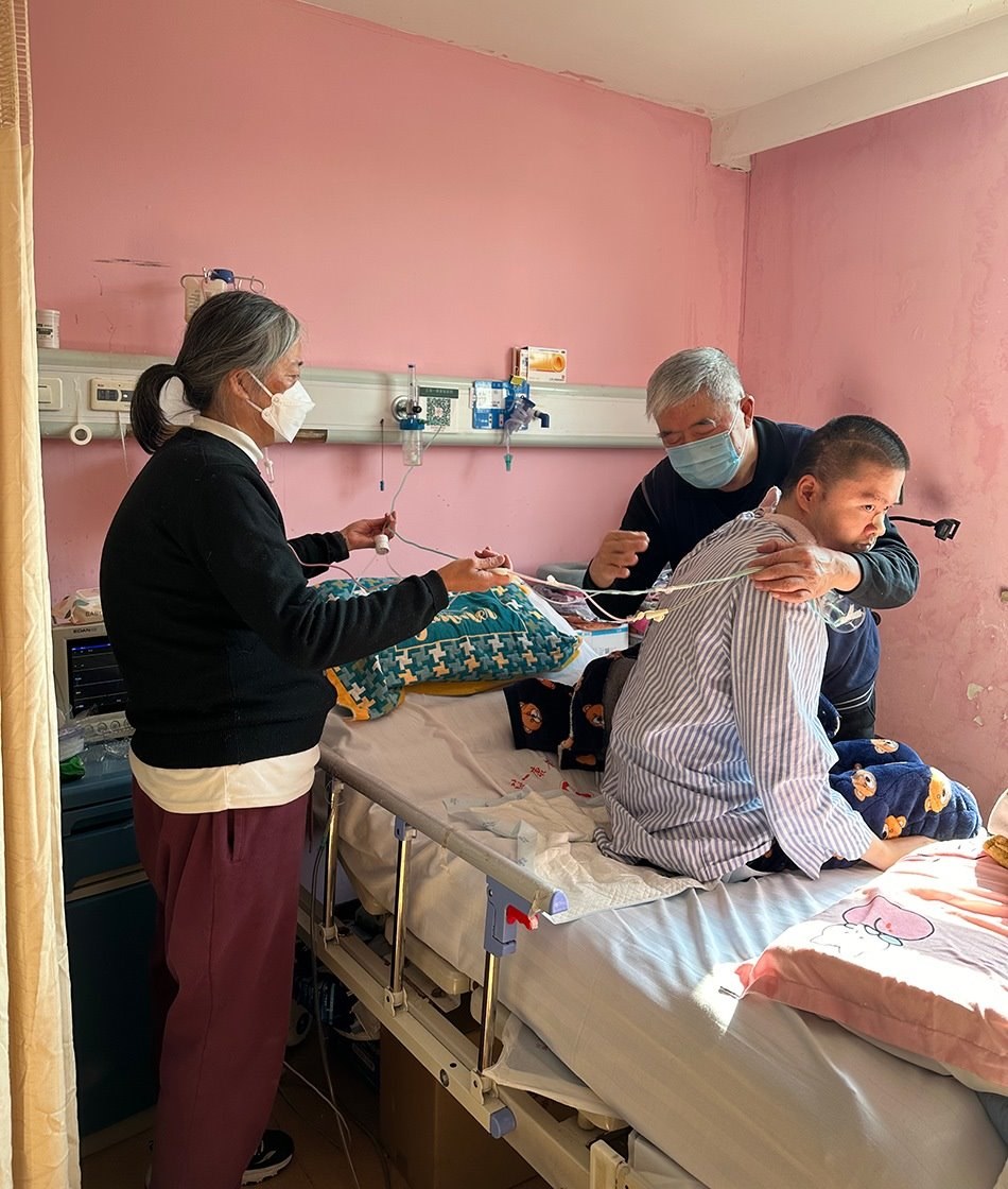 一月上旬的一個下午,鄭建英像過去一千多個日子一樣,坐在兒子床尾的椅子上,盯著他床頭監(jiān)視器的氧保。這幾年,她已經(jīng)形成條件反射,當(dāng)數(shù)值低于92時,她會從椅子上彈起來幫他吸痰。