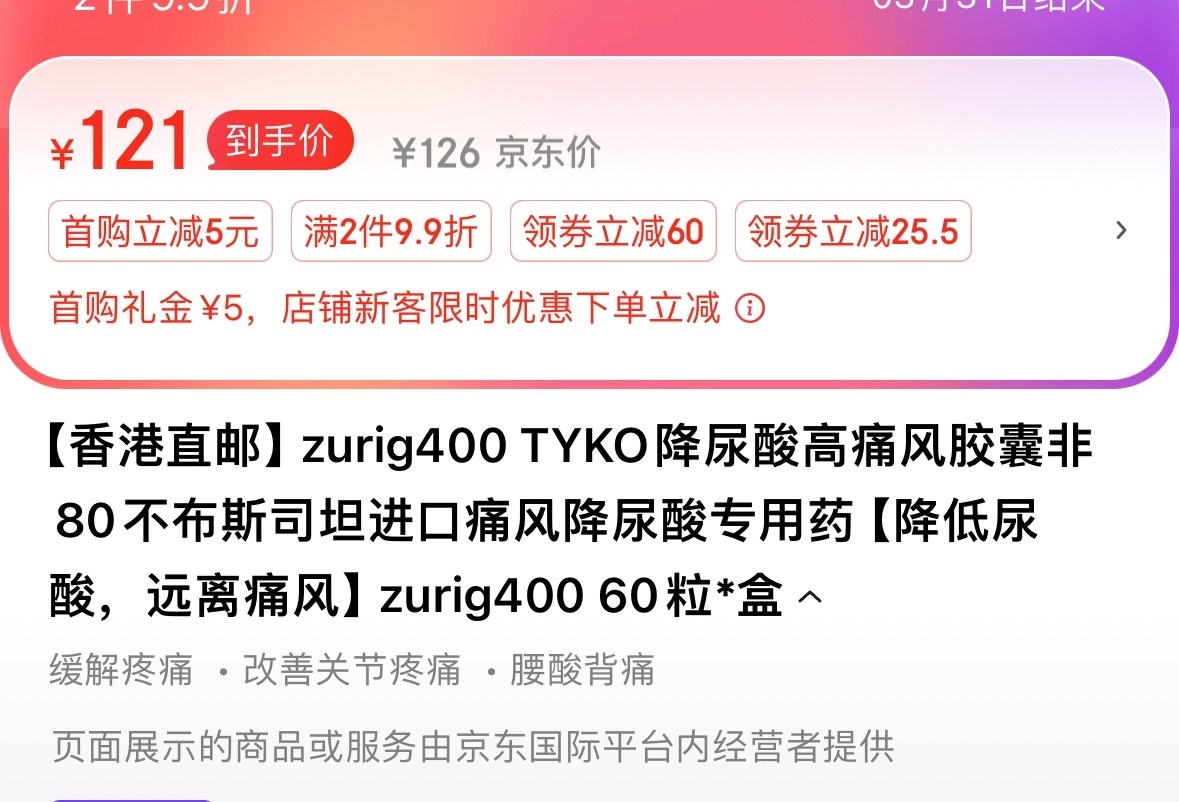 zurig400產(chǎn)品標(biāo)題宣稱“痛風(fēng)特效藥”