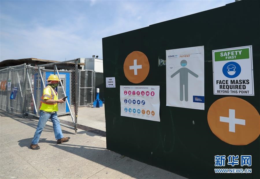 6月10日,一名男子走進(jìn)美國(guó)紐約一處新冠檢測(cè)點(diǎn)。新華社記者王迎攝