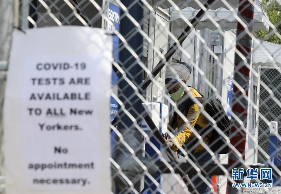 6月10日,一名女子在美國(guó)紐約一處新冠檢測(cè)點(diǎn)接受檢測(cè)。新華社記者王迎攝
