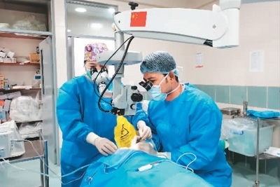 中方專家對當?shù)蒯t(yī)生進行手術指導。 (新華社發(fā))
