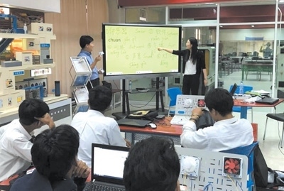 2016年3月,由天津渤海職業(yè)技術(shù)學(xué)院與泰國(guó)大城技術(shù)學(xué)院共同建設(shè)的全球首家魯班工坊正式揭牌,標(biāo)志著中國(guó)職業(yè)教育走出國(guó)門(mén),與其他國(guó)家分享優(yōu)質(zhì)職業(yè)教育資源。泰國(guó)魯班工坊采用“學(xué)歷教育+職業(yè)培訓(xùn)”方式,匯聚先進(jìn)教學(xué)裝備,集中優(yōu)質(zhì)雙語(yǔ)教學(xué)資源,設(shè)立了自動(dòng)化生產(chǎn)線教學(xué)區(qū)、仿生機(jī)器人學(xué)習(xí)體驗(yàn)區(qū)等15個(gè)教學(xué)實(shí)踐區(qū),讓學(xué)生們能夠更加直觀地在各種機(jī)器上操作演練。