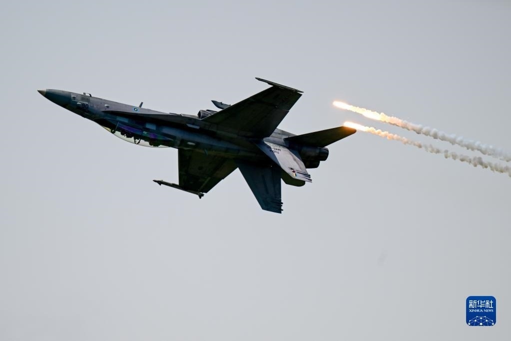 5月25日,在馬來西亞蘭卡威舉行的第16屆蘭卡威國(guó)際海事和航空展上,一架馬來西亞皇家空軍的F/A-18D戰(zhàn)機(jī)進(jìn)行表演。