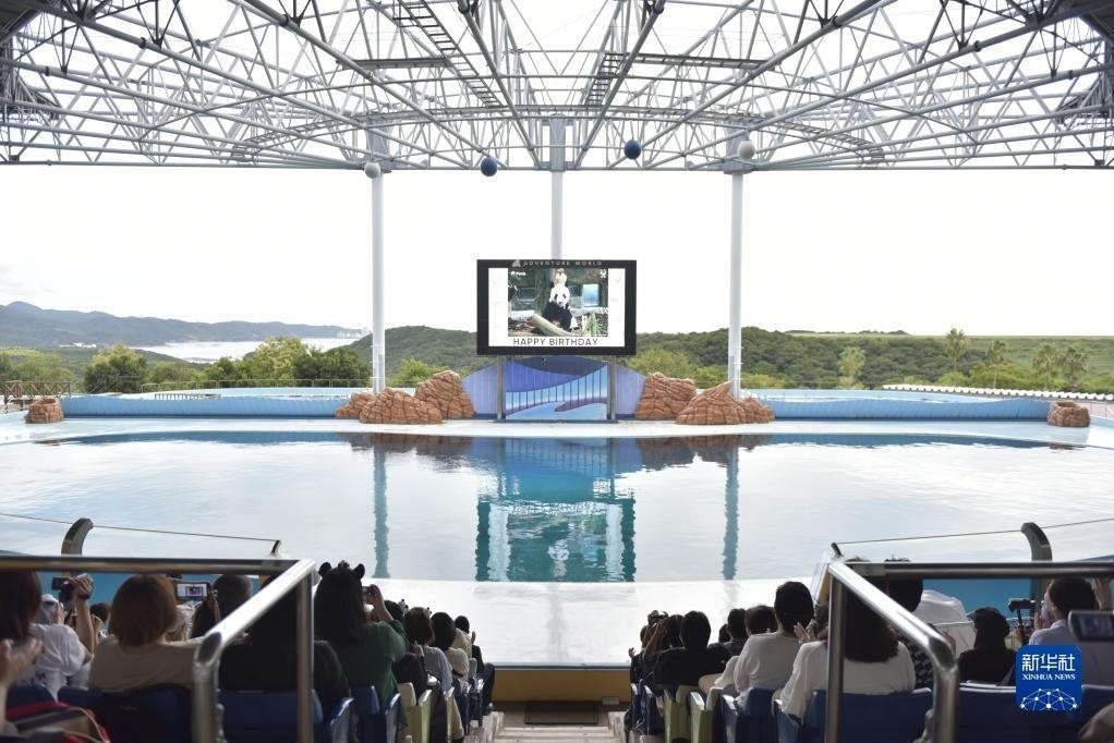 9月14日,觀眾在日本和歌山縣白浜冒險世界游樂園參加大熊貓“永明”31歲生日會。新華社發(fā)(中國駐大阪總領(lǐng)館供圖)