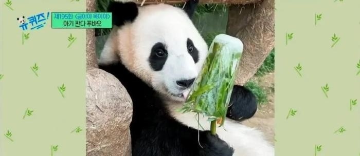 “福寶”吃“竹子冰淇淋”。(圖片來源:韓國(guó)tvN電視臺(tái))