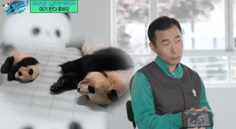 在韓國(guó)綜藝節(jié)目中,飼養(yǎng)員姜爺爺展示“福寶”照片。(來源:韓國(guó)tvN電視臺(tái))