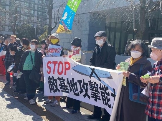 2023年2月28日,在日本東京,日本民眾舉著標(biāo)語牌抗議日本眾議院通過高額的防衛(wèi)費預(yù)算案。新華社記者郭丹攝