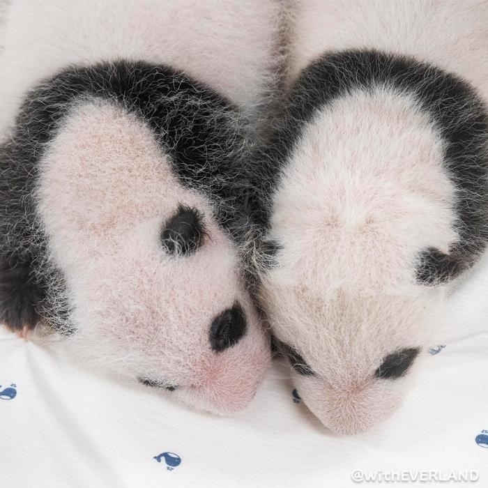 據(jù)報道,從公開的照片來看,這對大熊貓寶寶已開始慢慢長胖,眼睛、耳朵、肩膀、胳膊、腿周圍,顯現(xiàn)出獨(dú)特的黑色斑紋。