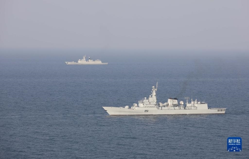 中巴“海洋衛(wèi)士-3”海上聯(lián)合演習在阿拉伯海北部海空域舉行,雙方艦艇組織編隊運動(11月14日攝)。新華社發(fā)(姜霞攝)
