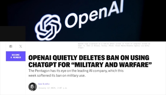 “在人工智能系統(tǒng)正被用于針對(duì)加沙地區(qū)的平民時(shí),OpenAI決定將禁止軍事和戰(zhàn)爭(zhēng)用途文字從其使用條款中移除,是值得關(guān)注的”,一位專家對(duì)“攔截者”網(wǎng)站這樣說道。