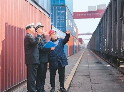 在中哈(連云港)物流合作基地?cái)?shù)字化調(diào)度中心,海關(guān)關(guān)員在對中歐班列動(dòng)態(tài)、現(xiàn)場裝卸情況等進(jìn)行實(shí)時(shí)監(jiān)控。近年來,連云港海關(guān)還創(chuàng)新應(yīng)用中歐班列“保稅+出口”集裝箱混拼、“鐵路快速通關(guān)”等通關(guān)便利化舉措,不斷提升貨物通關(guān)效率。本報(bào)記者 石 暢攝