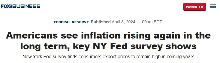 ??怂股虡I(yè)頻道在其另一篇報(bào)道中提到,據(jù)8日公布的一項(xiàng)紐約聯(lián)邦儲備銀行(Federal Reserve Bank of New York)進(jìn)行的消費(fèi)者預(yù)期調(diào)查顯示,美國人正在為未來幾年的高通脹率做準(zhǔn)備,公眾普遍的預(yù)期中值為從現(xiàn)在起一年內(nèi)通脹率將上升3%,與前幾個(gè)月持平,并在未來幾年通脹將保持高位,這表明他們認(rèn)為粘性通脹恐會持續(xù)下去。