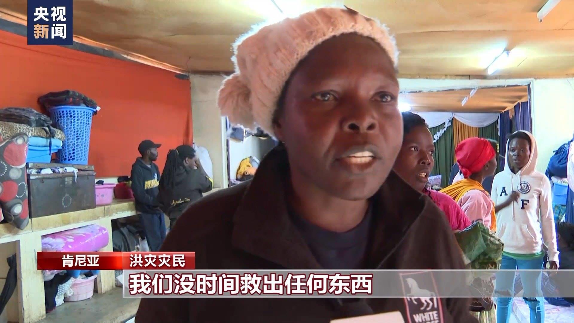 總臺(tái)記者 劉晨:這里是位于肯尼亞首都內(nèi)羅畢市中心馬薩雷貧民窟里的一所小學(xué),因?yàn)楹闉?zāi)失去住所的居民們被臨時(shí)安置在這里。由于暴雨影響,肯尼亞當(dāng)?shù)貙W(xué)校的開(kāi)學(xué)時(shí)間從本周又向后推遲了一周?,F(xiàn)在我身后這樣的教室已經(jīng)被改造成了臨時(shí)寢室,供災(zāi)民休息。政府送來(lái)了棉被和枕頭,每天也會(huì)定時(shí)為這里的難民提供食物。