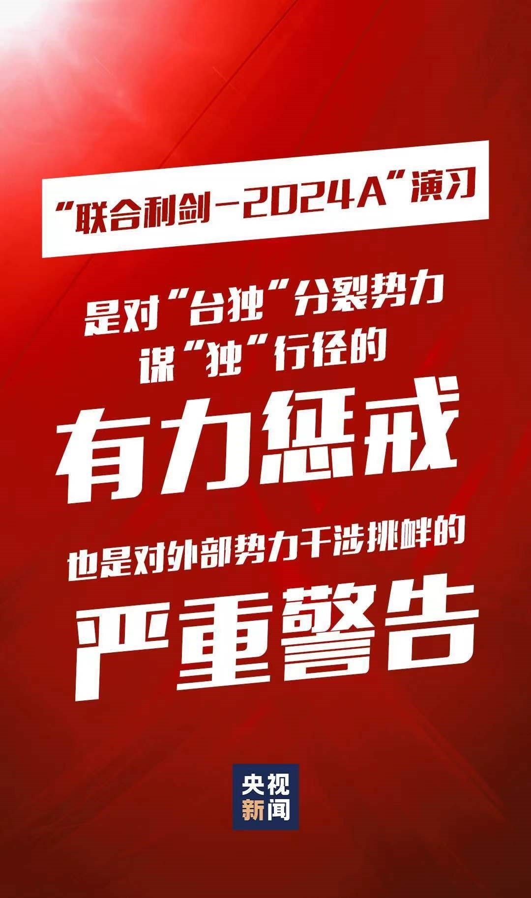 5月23日至24日,中國人民解放軍東部戰(zhàn)區(qū)組織戰(zhàn)區(qū)陸軍、海軍、空軍、火箭軍等兵力,位臺島周邊開展“聯(lián)合利劍-2024A”演習(xí),重點(diǎn)演練聯(lián)合??諔?zhàn)備警巡、聯(lián)合奪取戰(zhàn)場綜合控制權(quán)、聯(lián)合精打要害目標(biāo)等科目,艦機(jī)抵近臺島周邊戰(zhàn)巡,島鏈內(nèi)外一體聯(lián)動,檢驗(yàn)戰(zhàn)區(qū)部隊(duì)聯(lián)合作戰(zhàn)實(shí)戰(zhàn)能力。這是中國維護(hù)國家主權(quán)和領(lǐng)土完整的正義之舉,也是對“臺獨(dú)”分裂勢力謀“獨(dú)”行徑的有力懲戒,對外部勢力干涉挑釁的嚴(yán)重警告。