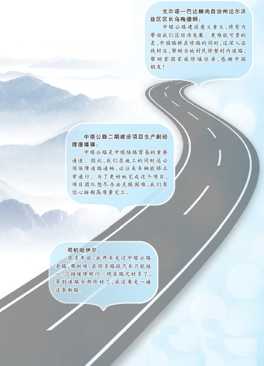 自中塔公路二期建設(shè)項(xiàng)目啟動(dòng)以來(lái),中國(guó)路橋積極履行社會(huì)責(zé)任,幫助道路沿線村莊修整道路18公里,開(kāi)展了一系列“小而美”民生工程。“改善了當(dāng)?shù)卮迕竦纳钏?。”李長(zhǎng)偉說(shuō)。