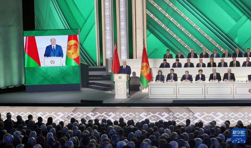 12月18日,在白俄羅斯明斯克,白俄羅斯總統(tǒng)盧卡申科(中)向白俄羅斯議會(huì)和人民發(fā)表國(guó)情咨文。新華社發(fā)(任科夫攝)