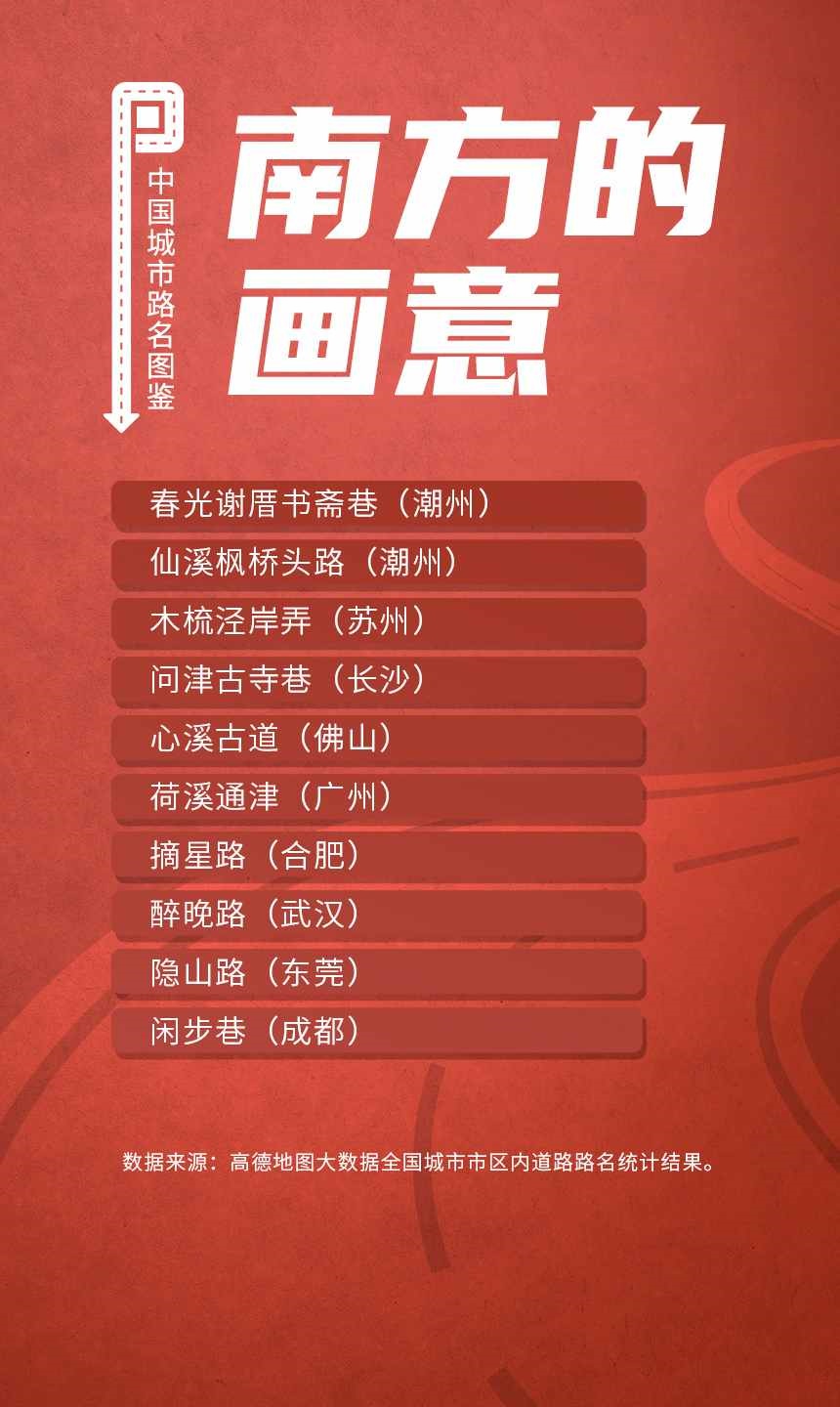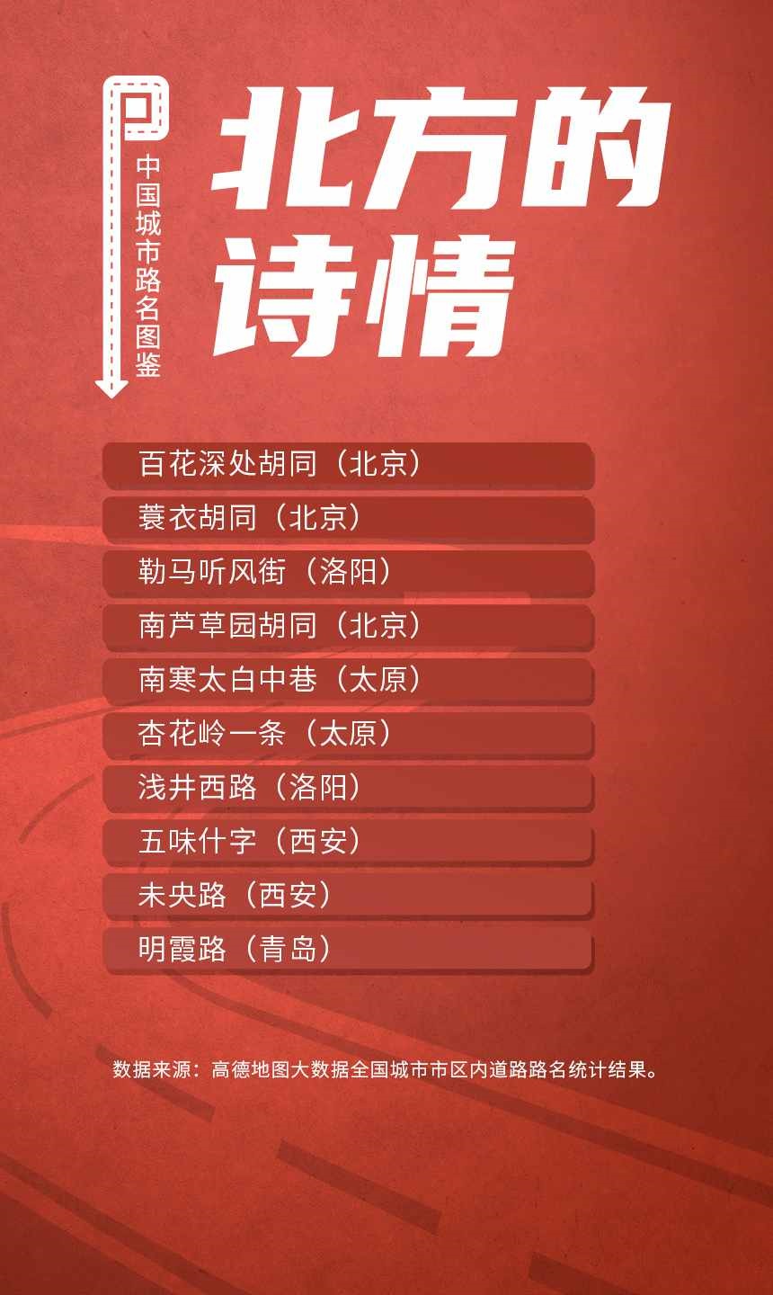 榜單顯示,人民路和建設(shè)路是全國重名率最高的道路,均有129個(gè)城市采用。此外,全國胡同最多的城市是北京;弄堂最多的城市是寧波;“小巷”最多的城市都在廣東省,深圳、東莞、中山、佛山和廣州包攬前五;“大道”最多的城市是佛山。
