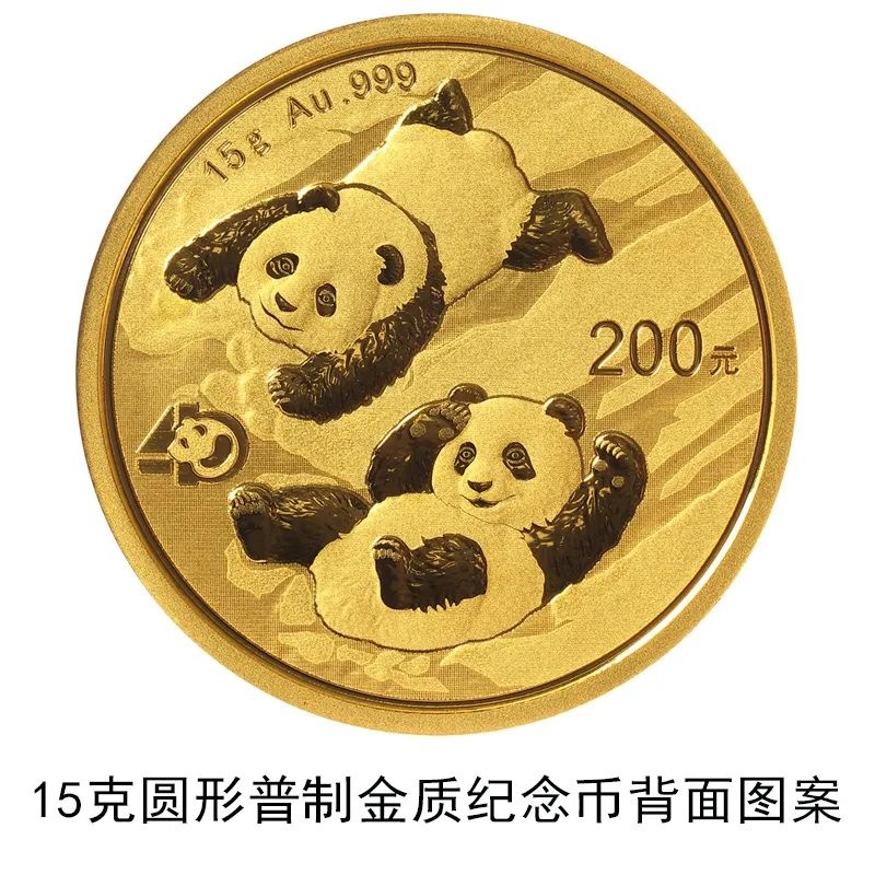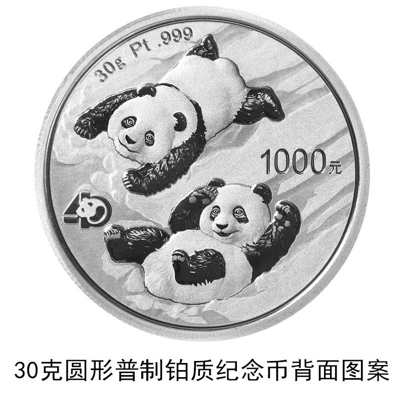 該套貴金屬紀(jì)念幣正面圖案均為北京天壇祈年殿,并刊國名、年號(hào);背面圖案均為大熊貓滑雪嬉戲場景,輔以“熊貓金幣發(fā)行40周年標(biāo)識(shí)”元素,并刊面額、重量及成色。