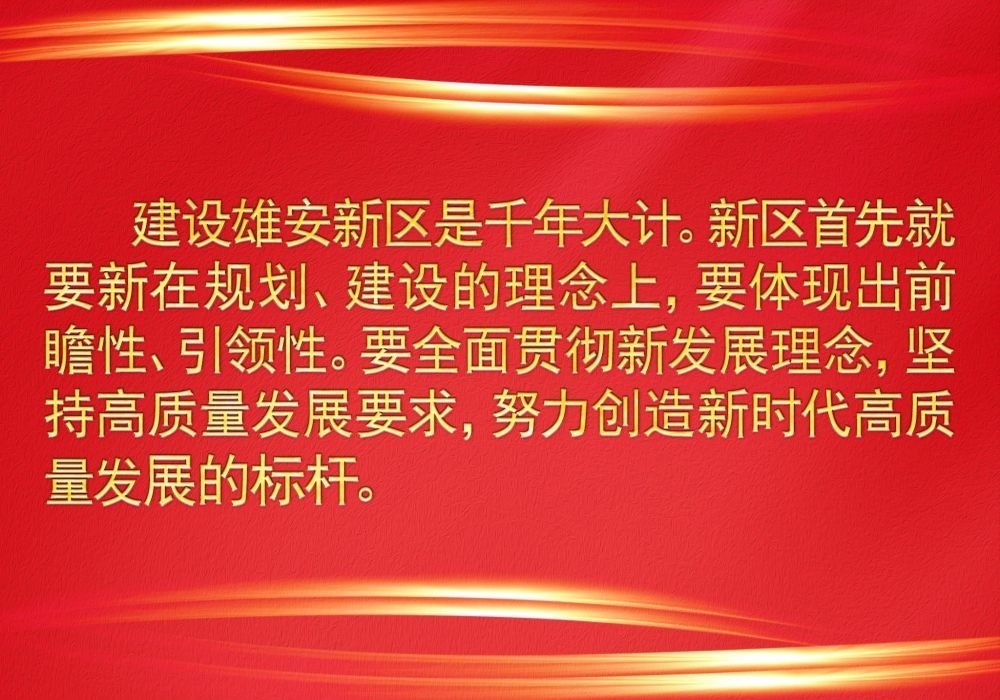 習近平總書記高瞻遠矚謀劃推動雄安新區(qū)規(guī)劃建設,他強調,要貫徹高質量發(fā)展要求,創(chuàng)造“雄安質量”,在推動高質量發(fā)展方面成為全國的一個樣板。
