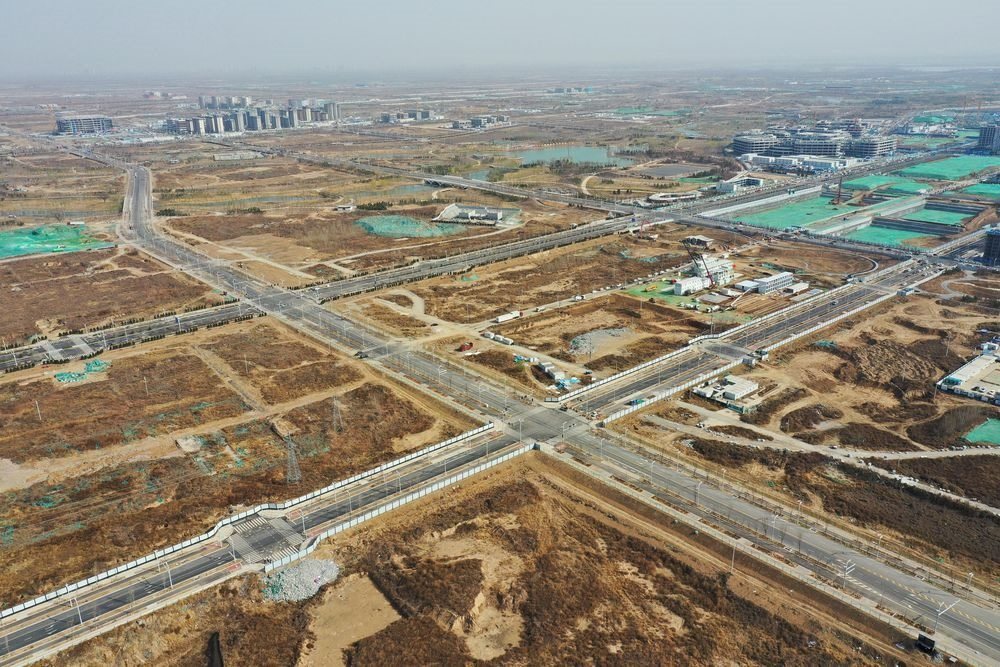 這是雄安新區(qū)啟動區(qū)內的路網(wǎng)(3月24日攝,無人機照片)。