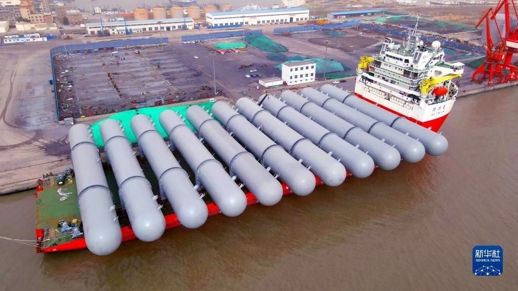 當(dāng)日,由位于山東省榮成市的一家重工企業(yè)制造的超大型石油液化氣儲(chǔ)罐啟運(yùn)安哥拉。這些大型“巨無(wú)霸”石油液化氣儲(chǔ)罐每臺(tái)直徑8米、長(zhǎng)80米、重約480噸。據(jù)了解,2022年以來(lái),山東省榮成市從石島港向“一帶一路”國(guó)家出口大型裝備160多臺(tái)(套)。新華社發(fā)(楊志禮攝)