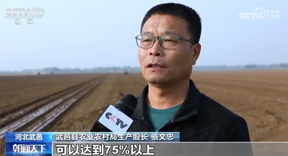 在武邑縣圈頭鄉(xiāng),多輛播種覆膜一體機(jī)在田間地頭來回穿梭。因?yàn)榇钶d了北斗衛(wèi)星導(dǎo)航,不僅播種精準(zhǔn)度高,還能一次性完成施肥、覆膜、播種等工作,大大提高了作業(yè)效率,一臺機(jī)器每天可完成200多畝地的種植。這里的高油酸花生全部訂單化種植,早在種植初期就與加工企業(yè)簽訂訂單合同,成熟以后由加工企業(yè)回收,保障了種植戶的生產(chǎn)效益。